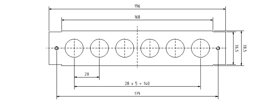 6 x Öffnung für Montage von Verschraubungen M20.