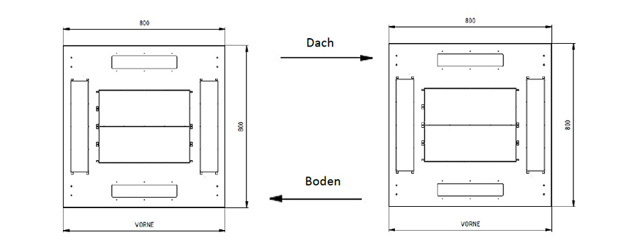 Dach und Boden mit vorgestanzten Ausbrüchen für Kabeleinführung, Lüftermontage, etc.